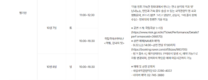 - 2023년 10월 7일, 8일 장소- 헬기장에서 국립국악관현악단에서 공연을 하니 같이 관람하면 좋을 것 같습니다