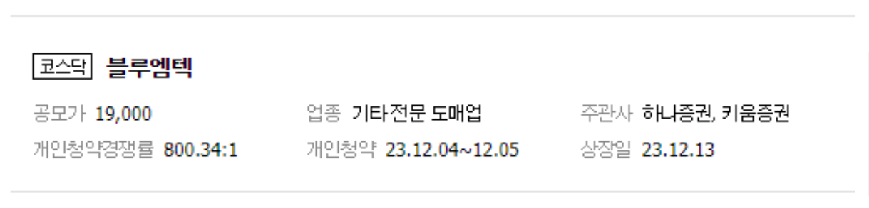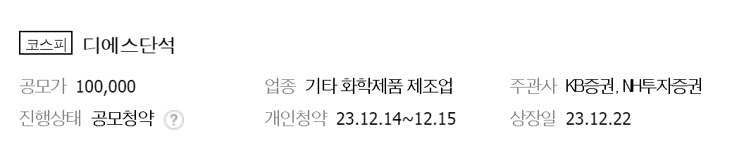 상장 예정일은 12월 22일로, 공모가는 100,000원으로 결정되었습니다. 청약은 12월 14일부터 15일까지 진행되며, 배정 공고와 납입, 그리고 환불은 12월 19일에 이루어집니다.