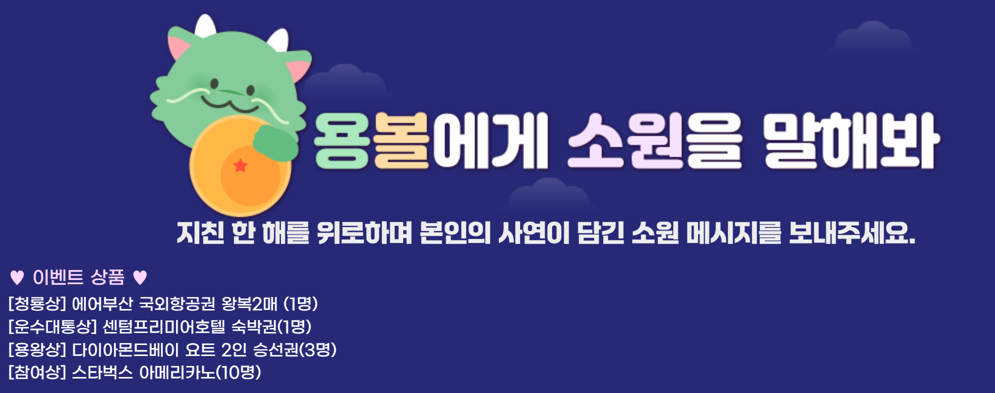 - 사연접수 : 용볼에게 소원을 말해봐 (이벤트 상품 있음)