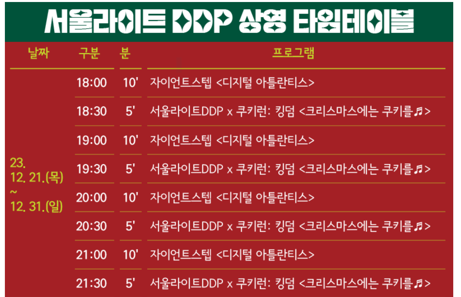 12월 서울축제 서울라이트 DDP 12월 축제 DDP 새해맞이 카운트다운